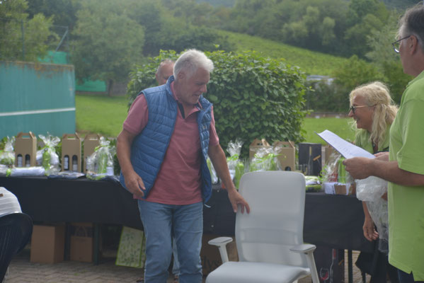 Die Lacher auf ihrer Seite hatten die TCM-Vorsitzenden Roger Frank und Brigitte Herzinger, als sie bei der gut besuchten Siegerehrung Carsten Nübling den „Rainman-Sonderpreis“, einen Regenschirm, überreichten. Der Oberligaspieler des TC Mutterstadt, Seriensieger bei den Modenbach Open und im Finale der Herren 50 gegen Jochen Zühlcke erfolgreich, hatte während des Turniers scherzhaft angemerkt, dass er im Modenbachtal noch nie die Sonne gesehen habe, so oft hatte er schon bei regnerischem Wetter auf der TCM-Anlage spielen müssen.