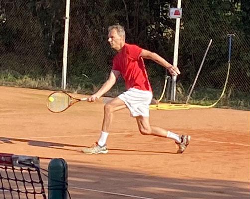 Die Herren 50 des TC Modenbachtal haben ihr Nachholspiel in Mutterstadt mit 5:1 gewonnen. Mannschaftsführer Roger Frank wehrte im ansehnlichen Spitzeneinzel zwei Matchbälle ab und siegte noch mit 11:9 im Match-Tiebreak. Klaus Müller punktete klar auf Position zwei, Michael Wirth setzte sich im dritten Einzel mit 6:4, 6:4 durch. Peter Rodach unterlag nach zwei engen Sätzen. Damit 3:1 nach den Einzeln. Peter Brandstetter bei seinem "Comeback" und Roger Frank siegten im Einserdoppel ebenso sicher wie Klaus Müller und der nach langer Tennis-Pause wieder in die Medenrunde eingestiegene Martin Meßmer. Am Samstag, 8. Juni, 14 Uhr, erwartet der TCM den Post SV Ludwigshafen zum Duell der noch ungeschlagenen Teams.