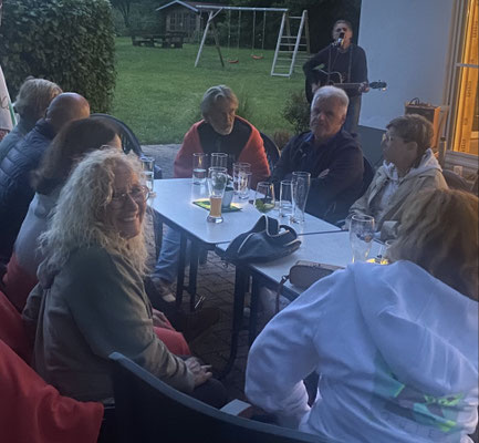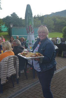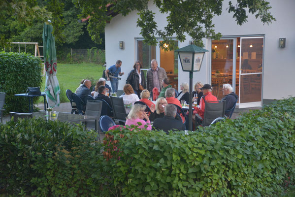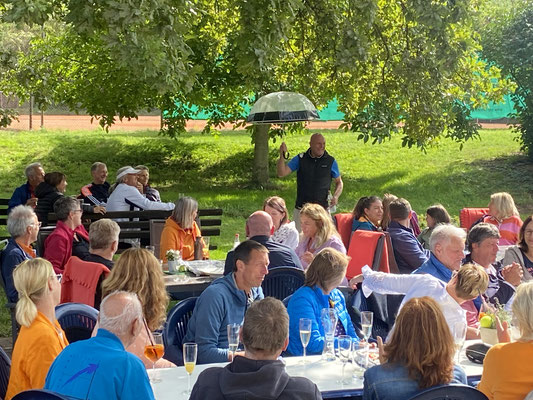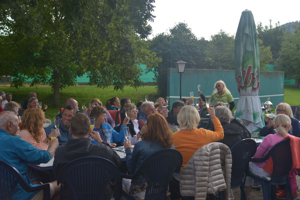 Der Lohn für die Mühen: Das leckere gemeinsame Essen der Mannschaften nach dem Spiel im schönen Modenbachtal (hier die Herren 50):