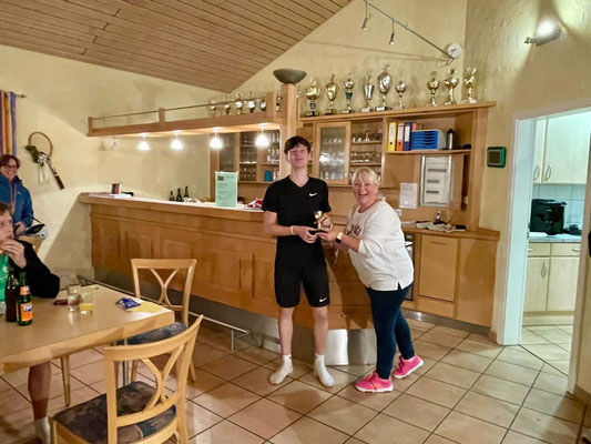 Das Turnier wurde als Tagesturnier im Spiralsystem ausgetragen. Dabei hat jeder Spieler zwei Matches: Eins gegen einen besser eingestuften Spieler und eins gegen einen schlechter eingestuften Spieler. Bei den U15-Jungs hatte Lenny Weber vom TC Mutterstadt den besten Leistungsklassen-Wert vor den beiden Landauern Silas Meyer und Liam Schuhmacher. Silas Meyer gewann seine beiden Spiele. Carsten Nerding (Foto) vom TC Modenbachtal Hainfeld siegte ebenfalls zweimal. Zwei weitere TCM-Nachwuchsspieler, Philipp Konrad und Emil Laqué, gingen jeweils einmal als Sieger vom Platz.
